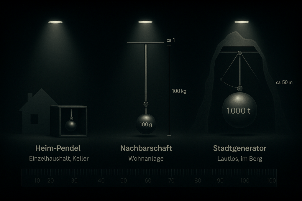 Was wie ein poetisches Bild klingt, ist in Wahrheit ein realistisches Prinzip zur Energiegewinnung: Die Nutzung der Gravitation durch kontrollierte Pendelbewegungen.