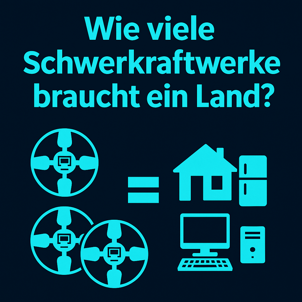- Wie viele Schwerkraftkraftwerke braucht ein Land?Warnhinweis Hinweis:Die folgenden Überlegungen basieren auf vereinfachten, hypothetischen Modellrechnungen.Sie ersetzen… Wie viele Schwerkraftkraftwerke braucht ein Land? weiterlesen
